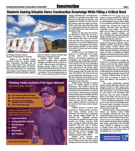 Minnesota schools are gaining valuable interested in learning home construction Goodhue High School hired Mike Harvey to ported by the respective communities and