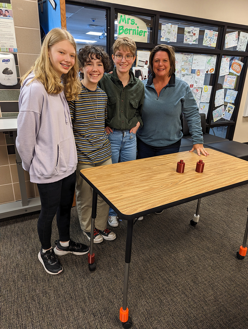 classroom furniture. They designed and created a simple way to add wheels to